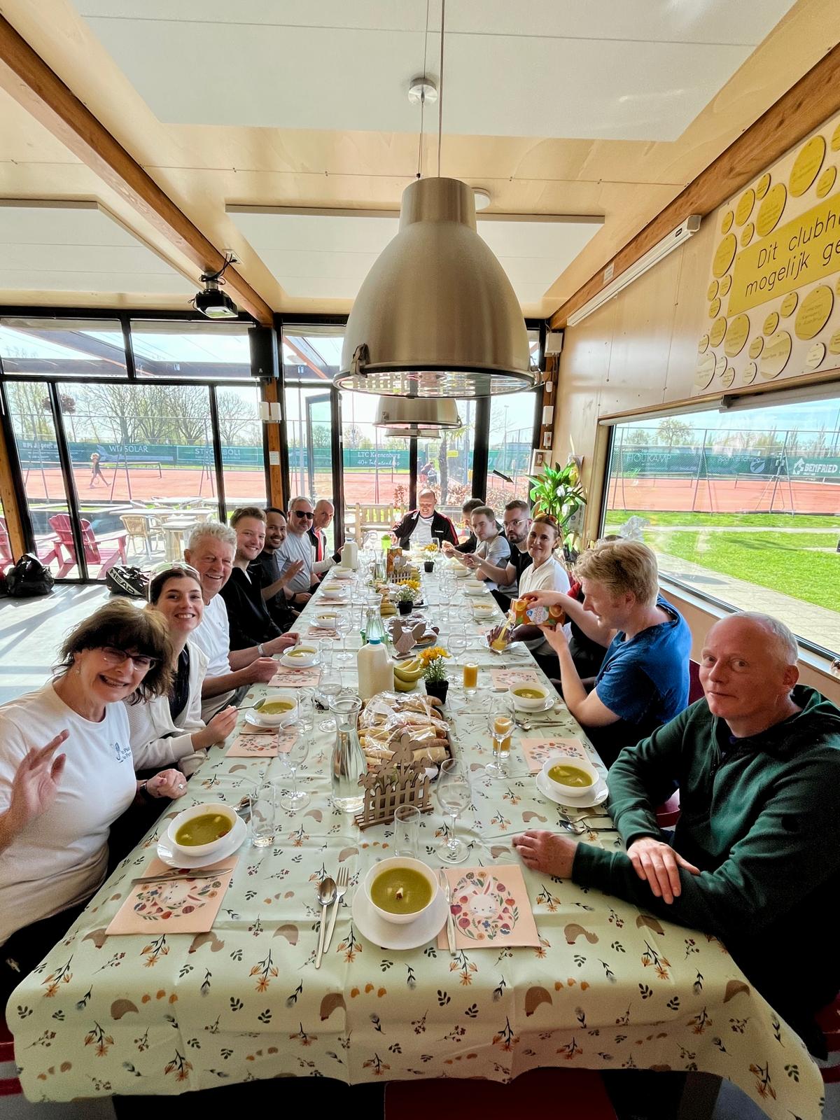 Tussen de wedstrijden door stond een verzorgde paaslunch klaar voor ons klaar. Broodjes, een heerlijk soepje en nog meer paaseieren, aan een paas- versierde tafel gaf echt wat extra’s aan deze dag.